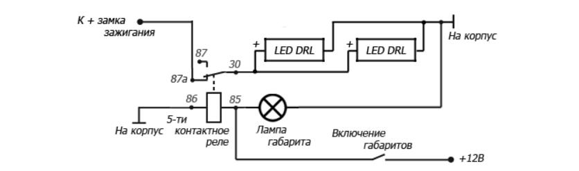 - Next, it is necessary to find the relay of the passing and driving lights, in different models, their location may differ. From terminal 86 with both elements runs a wire that must be soldered to the LEDs.