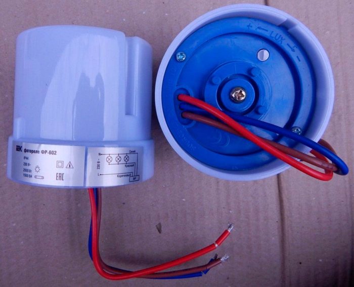 The light detector can be built into the device body, or it can be remote. Then it can be installed in any convenient place. The adjustment unit allows you to adjust the triggering level - you can make the relay turn on the light earlier or later.