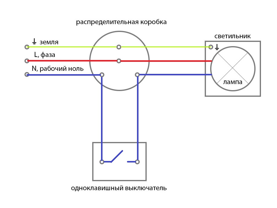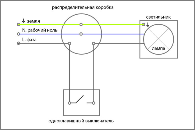 If mistakes were made when connecting the lamp to the mains, it is likely to glow when the power is off. The reason is that the phase wire is connected directly to the light fixture, while the neutral wire goes to the switch. Even opening the circuit does not stop the voltage from being supplied to the contacts of the appliance.
