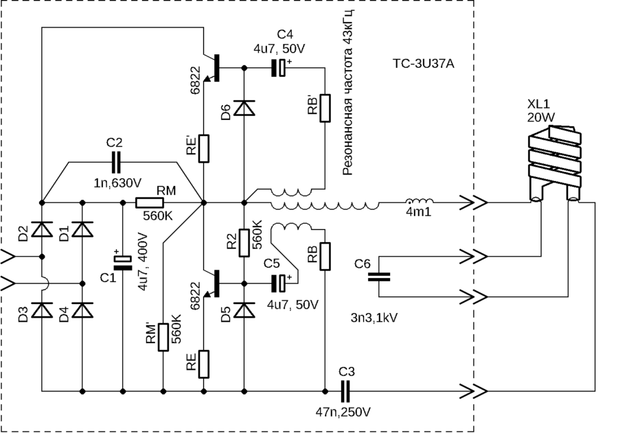 Faulty elements Desolder and replace with other elements. You can use parts from other broken energy-saving lamps, first making sure that they are in good working order.