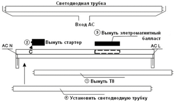 Redesigning the luminaire for LED lamp instead of fluorescent has features that are better to consider at the stage of preparation.