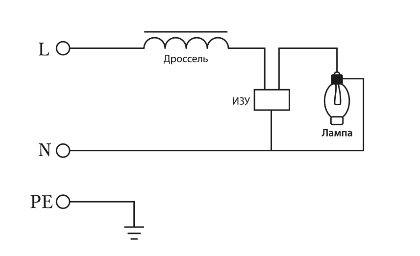 In connection diagrams for sodium lamps, the choke is always connected in series while the ignition unit is connected in parallel.