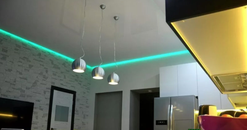 You don't have to think too much about tape mounting method. All of the above methods of attachment help to accurately hide traces of installation and make sure that the upgrade fits into the interior. LED strip can be glued to the cabinet or to the base of the ceiling, how to do it is up to you. The main thing is that it is beneficial.