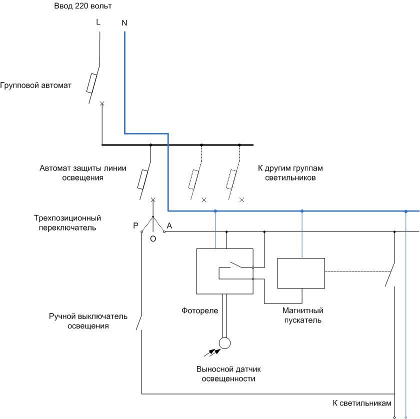 All lighting fixtures should be combined into groups according to their functional purpose. For example, some devices should turn off automatically with the first rays of the sun. They are connected via photo relay .. Others should shine a little longer, they are connected through another light relay with a different triggering level. A third group of lights must be controlled manually only. They are connected through a normal switch. All this should be thought through at the design stage, before you buy the components and start the installation.