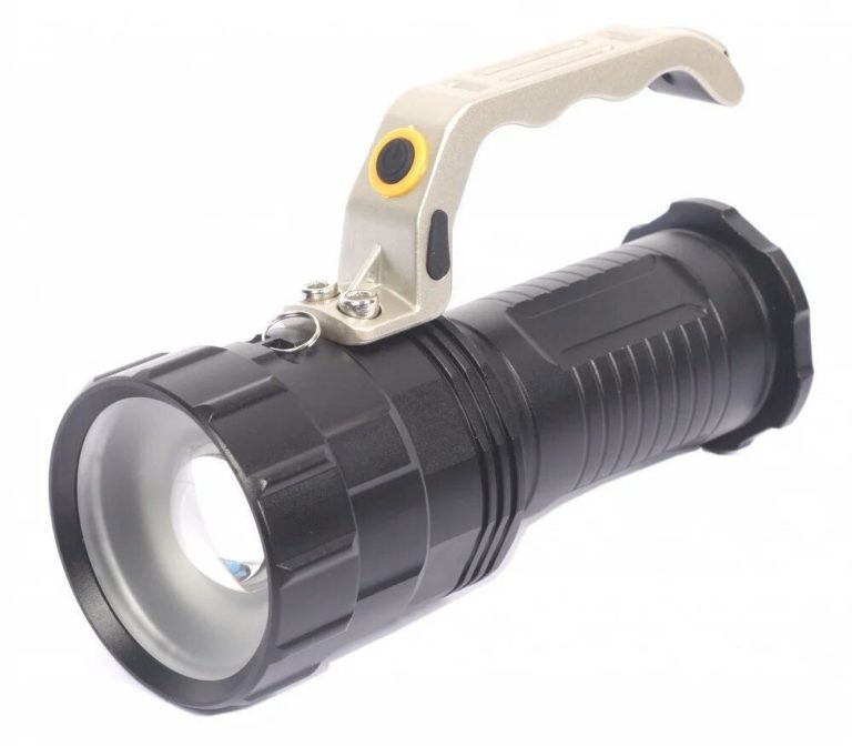 Budget Chinese for the Russian market. One cold LED at 1500 lm, in a smooth reflector, shines for 4 hours at 900 meters. Adequate range does not exceed 450m. The plastic case is bulky, with a handle-holder. The battery is built-in and can be replaced. There are only two modes: 100 and 50% power.