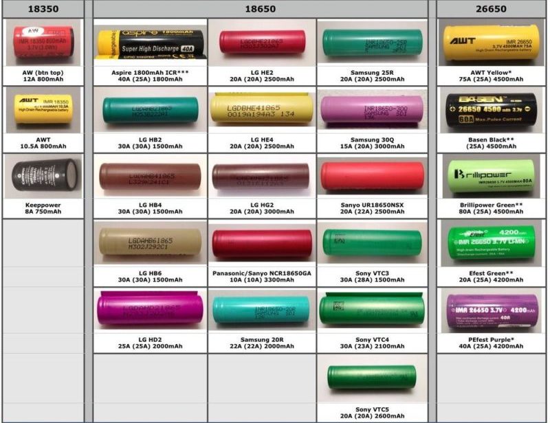 Some devices have a cartridge of the same size under the barrel with connectors for smaller batteries. By electrolyte type, batteries come in: