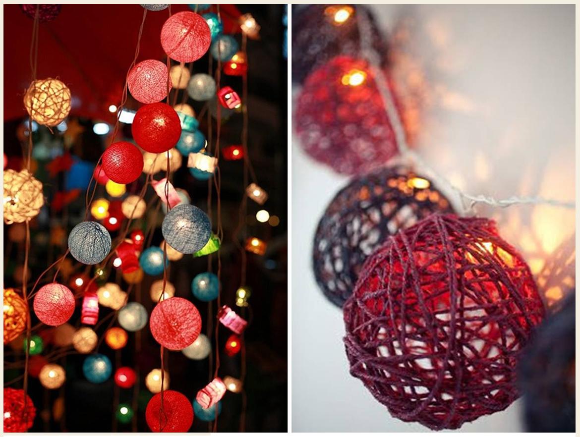 Do not make bulky designs, a chandelier made of thread is made light and floating, it should be airy and contrasting. You can use threads of different colors, laying them under another layer or on the contrary, wrap a yellow ball with green thread in a chaotic order.