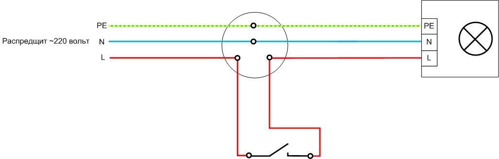 The wiring diagram of the luminaire as a "black box" using a distribution box is shown in the figure. The wall switch is the main light. If it is turned off, the remote control will not affect the operation of lighting.