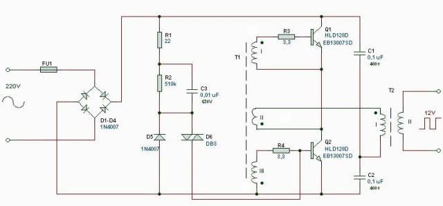 All semiconductor elements (transistors, diodes) can be checked in a row. The winding elements will usually show signs of burning when they fail. To find the fault of the other parts, you will have to work with instruments. First of all, localize the fault by checking the presence of a constant voltage of 220 V at the output of the bridge. Next, use an oscilloscope to check for oscillations at the output of the pulse transformer and, using the information obtained, find the faulty element.