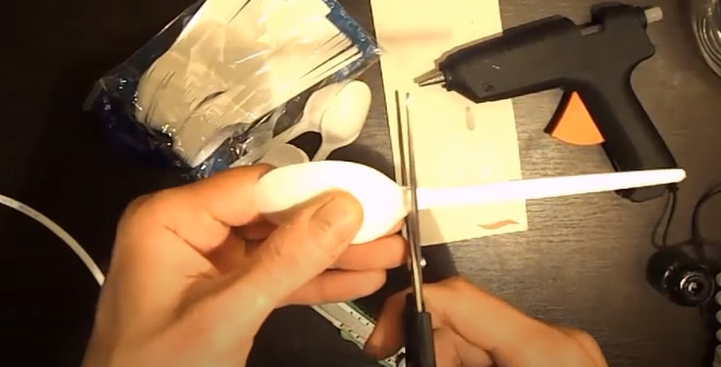 - Using scissors, cut off the tops of disposable spoons.