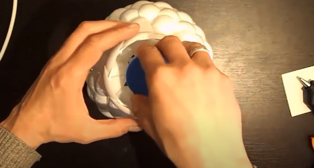 - Such a way to glue it until the body of the lamp with a free space in the middle for the bulb. For better fixation, the petals are temporarily fixed with paper clips, which will then need to be removed.