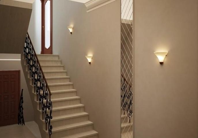 - For stairs, sconces with soft, muted light are suitable, the light should not strike the eyes. If there is not enough light, it is better to put additional lights, and not to use bulbs more brightness.