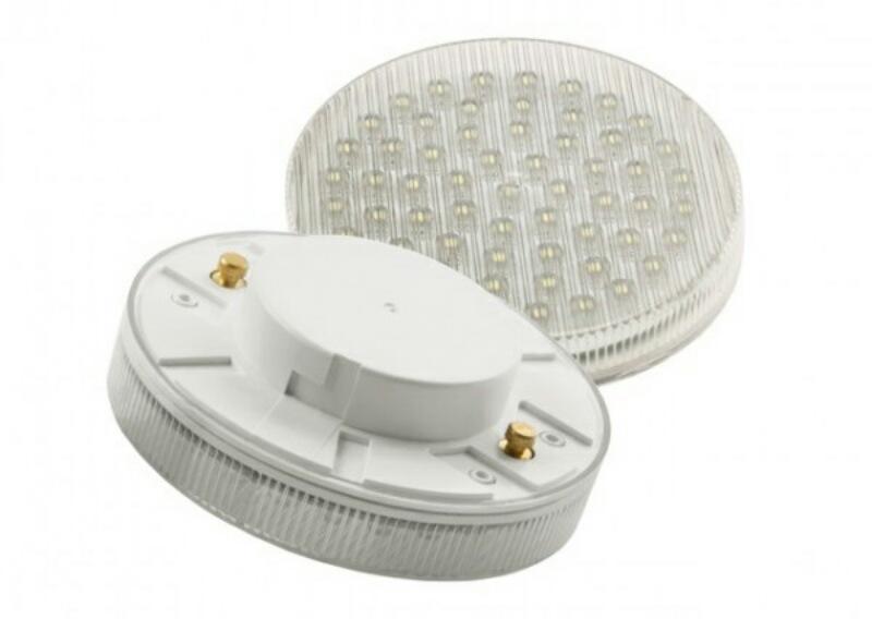 The tablets have a flattened shape, which allows their use in rooms where it is necessary to save space between the supporting structures and the suspended ceiling. The tablets use LEDs as a light source, for which a power supply unit is installed in the body of the device. GX53 is a pin base format, with a pin spacing of 53 mm. At the ends of the pins there are thickenings for fixation in the rotary slots of the connector.