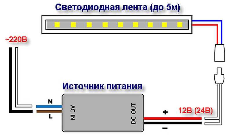 - wire. To know the required length, it is necessary to make measurements. The cross section should be at least 1.5 mm2, and the product that will be connected to the tape - 0.75 or 1 mm2. For these purposes, a wire with 2 cores of different colors will be suitable;