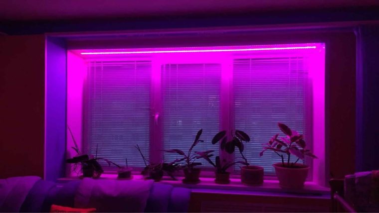 LED strip, which is used as a curtain light, comes in two types of lighting - side and end. Due to its compact size, it can be installed even in a narrow window opening. LEDs will not be visible when the lights are off.