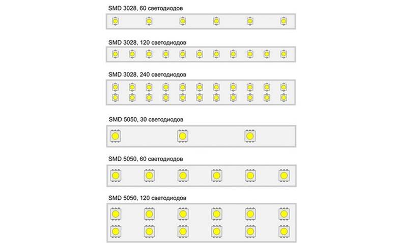 Density is a technical parameter that determines the number of elements installed per 1 meter of tape. They can be from 30 to 240 pieces. The density determines the characteristics of luminous flux and energy required for operation.