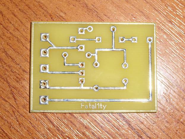 The next step is to clean the tracks with sandpaper and you can start drilling holes to install the board elements. Next, the board needs to be tinned. To do this, it is lubricated with flux, and then tinned with a soldering iron. To avoid overheating or breaking the circuit, the soldering iron must always be in motion..