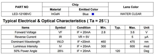 Blue LED specifications: