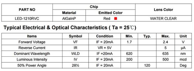 Red LED specifications: