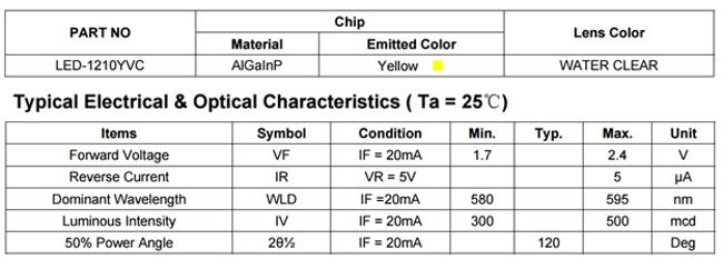 Yellow LED specifications: