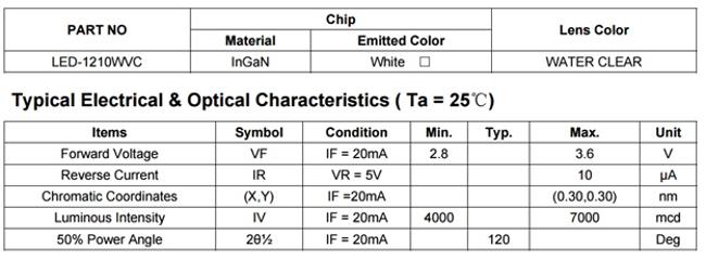 White LED specifications:
