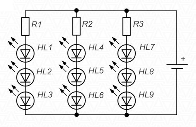 For reliability, it is better to use a series connection with the use of current-limiting resistors. Below is a diagram of such connection.